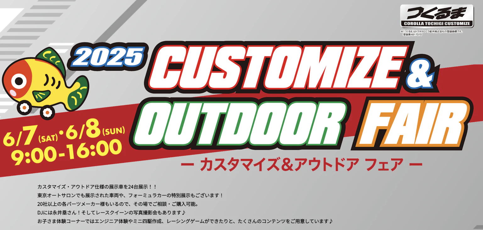 トヨタカローラ栃木さま主催の「カスタマイズ&アウトドア フェア 2025」に出展いたします。