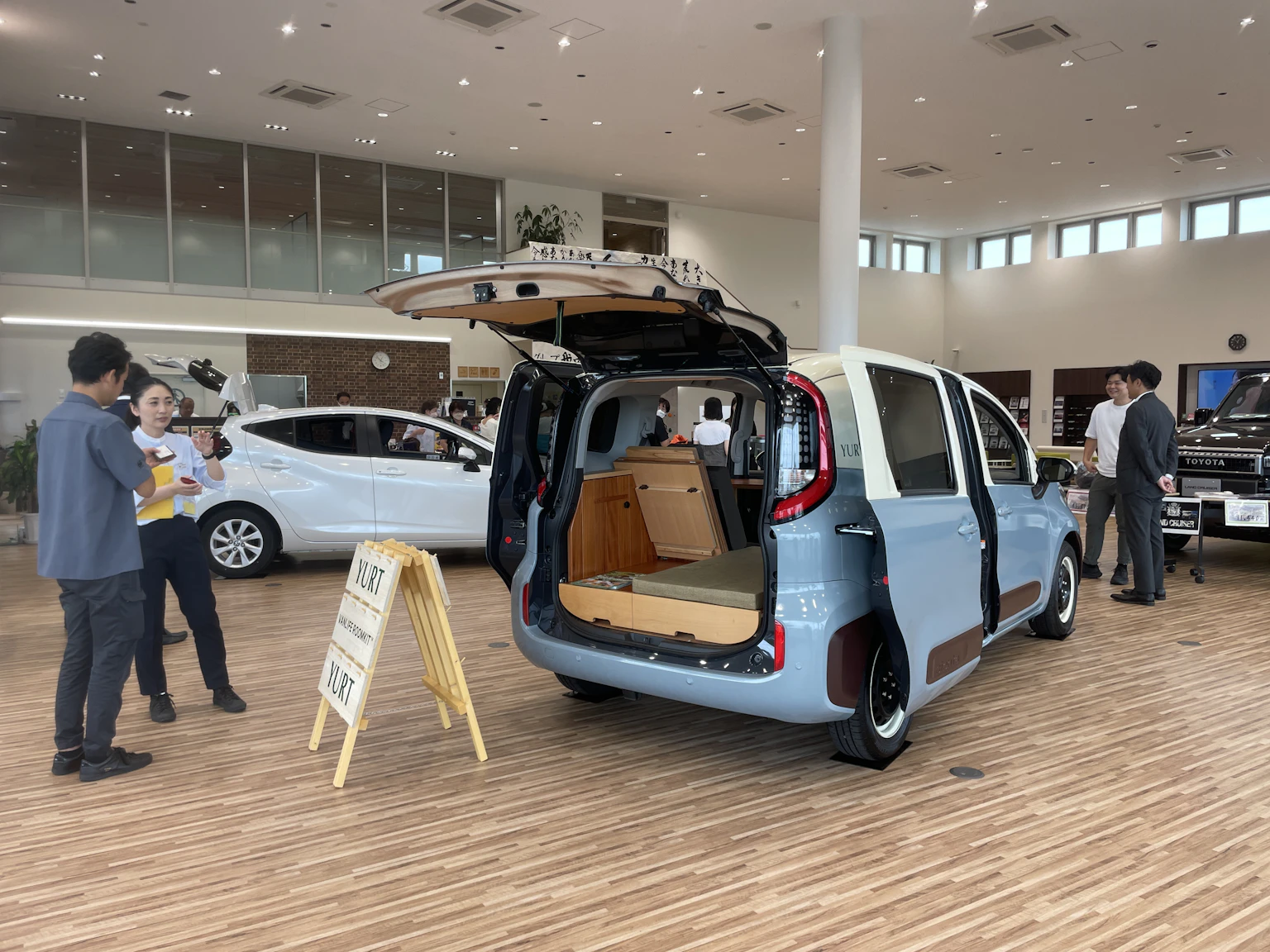 車中泊は、旅行や観光だけでなく、災害時の避難所としても活躍します。今回の展示では、アクアも紹介され、シエンタよりも小さい車でも十分に寝ることができました。