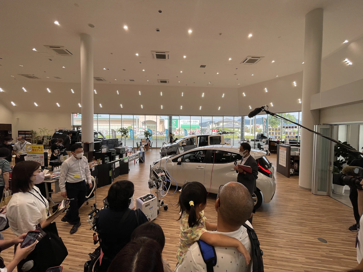 災害時に、医療機器の電源確保にハイブリッド車を活用する方法のデモンストレーションや防災の勉強会が開催され、車中泊の例としてYURTも展示頂きました。