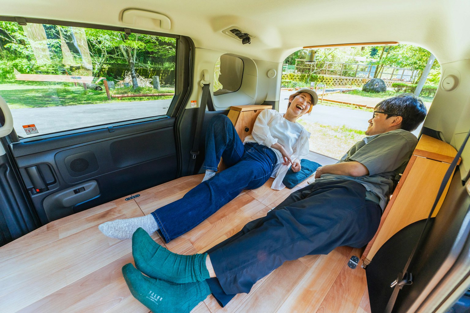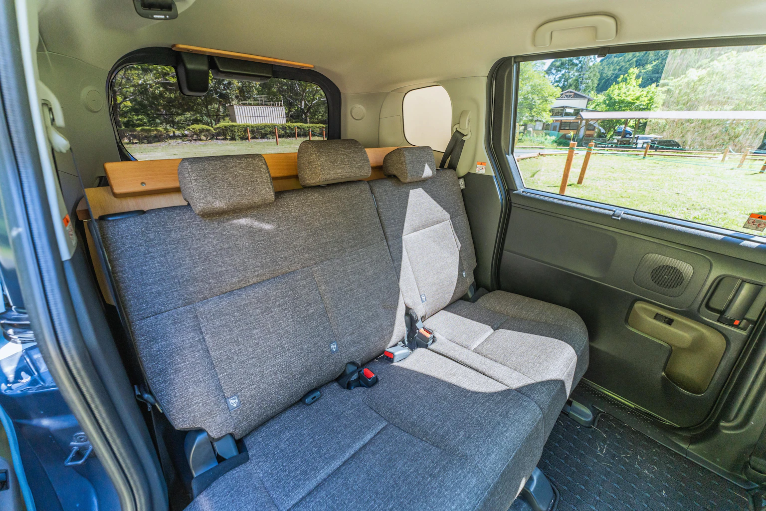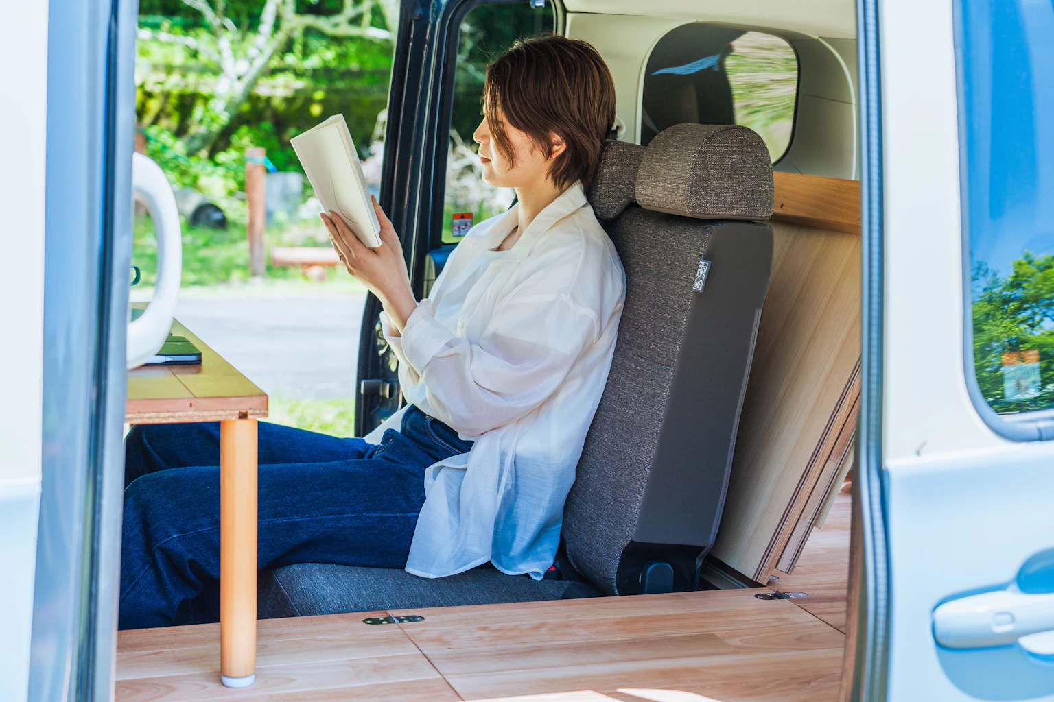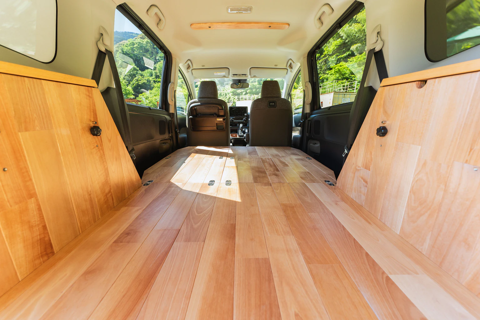 日常の車としての機能は損なわず、遊ぶときにはバンライフを楽しめるモード切り替えの仕組みは、特許出願中です。(特願2024-79787)